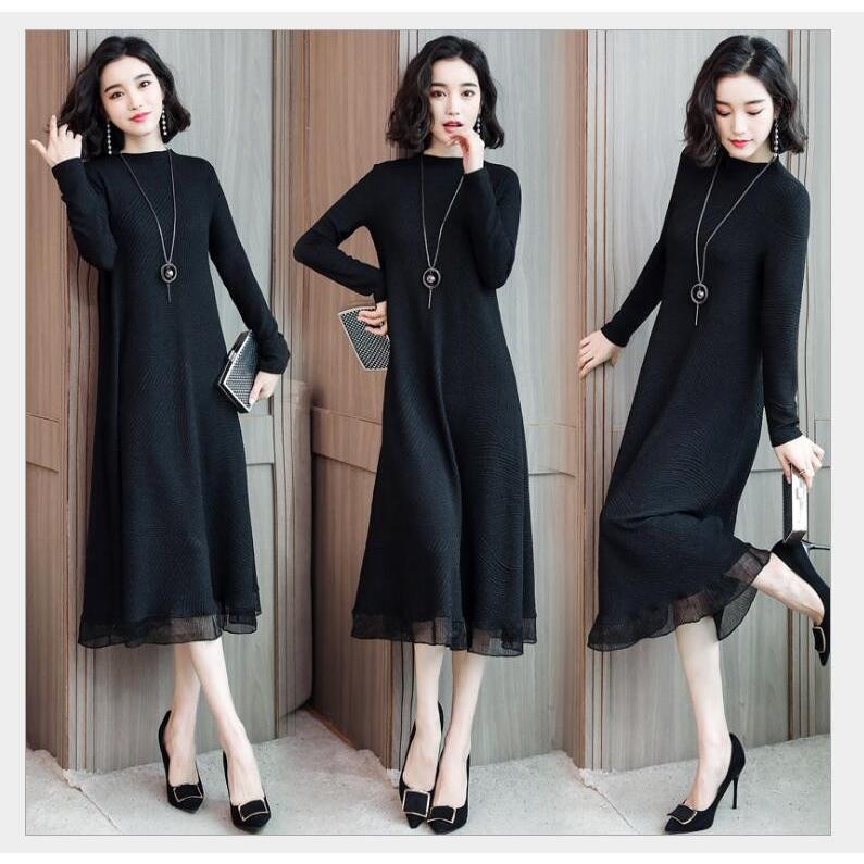 ロング丈ワンピース ロングドレス カジュアルワンピース レディースファション 着痩せ 二次会 女子会 秋物長袖ワンピース 大きいサイズ M L Ll 3l ブラック コーヒー色 Elegant